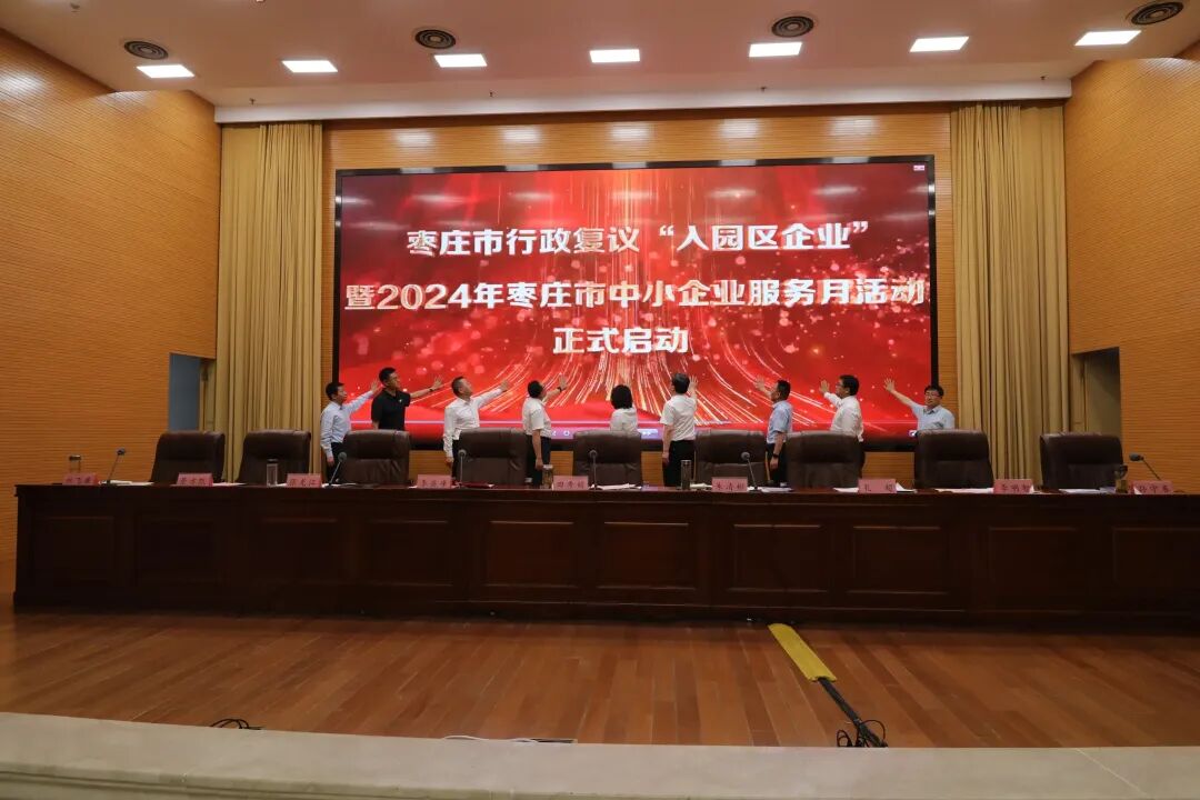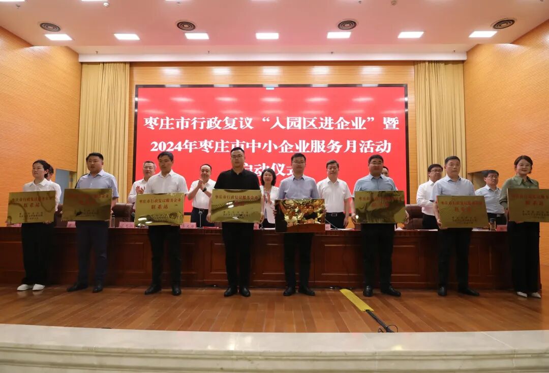启动仪式上,枣庄市司法局、枣庄市工业和信息化局主要负责同志分别宣读了《枣庄市行政复议服务和保障中小企业高质量发展实施方案》和《枣庄市2024年“中小企业服务月”活动方案》,出席启动仪式的省、市领导共同触屏正式启动枣庄市行政复议“入园区进企业”暨2024年枣庄市中小企业服务月活动,并为枣庄市行政复议服务企业联系站授牌。