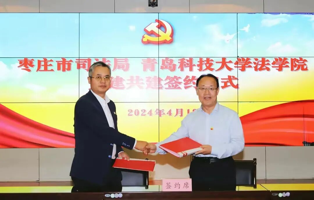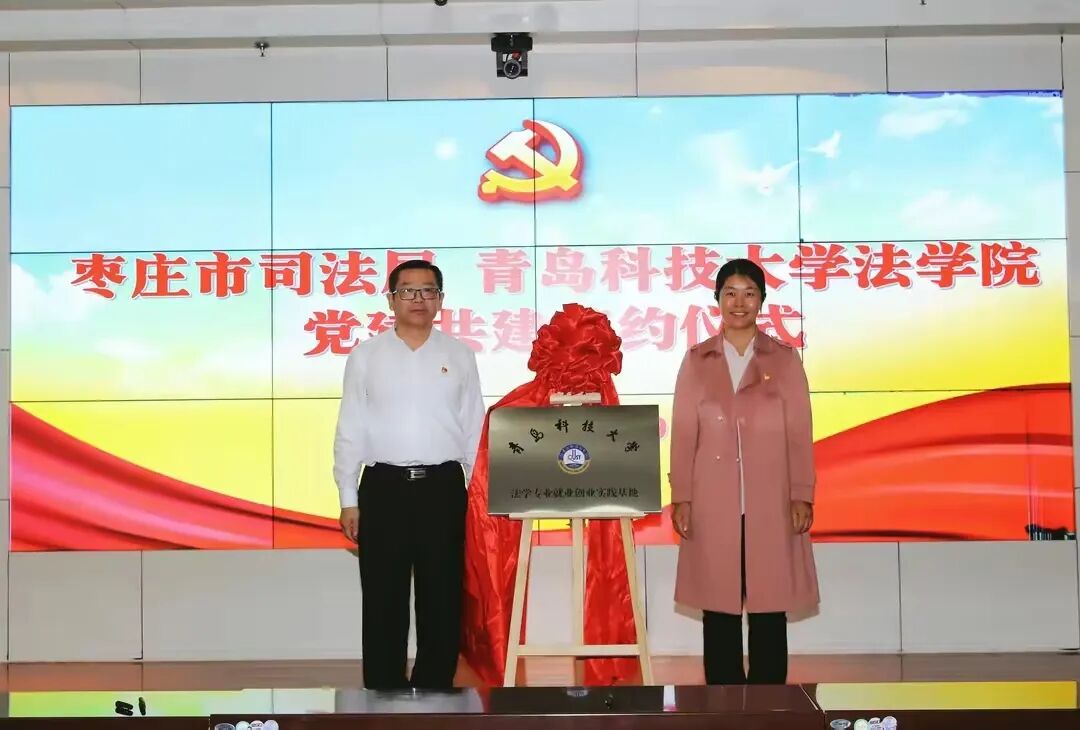 学院一行参观了枣庄市司法局党建和法治阵地,观看了枣庄市创建法治政府专题片。双方进行了互动交流,签订了党建共建协议,为“中共枣庄市司法局机关委员会 中共青岛科技大学法学院委员会 党组织共建单位”“青岛科技大学法学专业就业创业实践基地”揭牌。