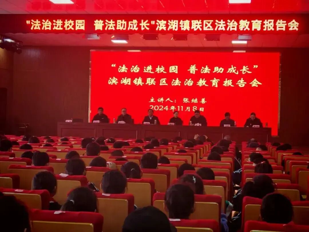 11月8日,滕州市司法局、滨湖镇教育联区到滨湖镇中心小学开展“法治进校园 普法助成长”法治教育报告会。