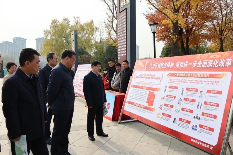 在第11个“国家宪法日”之际,市人大常委会举办枣庄市“宪法宣传周”集中宣传活动,深入贯彻落实习近平法治思想,加强宪法宣传教育,推动宪法全面贯彻实施,切实营造良好法治环境。活动现场气氛热烈,市人大、薛城区人大精心设计制作内容丰富、图文并茂、喜闻乐见的系列宣传展板,充分展示宪法发展历程、相关知识和法治枣庄建设生动实践。市、区两级有关部门通过现场讲解、宣传展示、发放知识手册等形式,向观展群众普及宪法知识。邵士官一行认真观看展板、仔细聆听介绍,不时与现场工作人员进行交流,深入探讨了解。