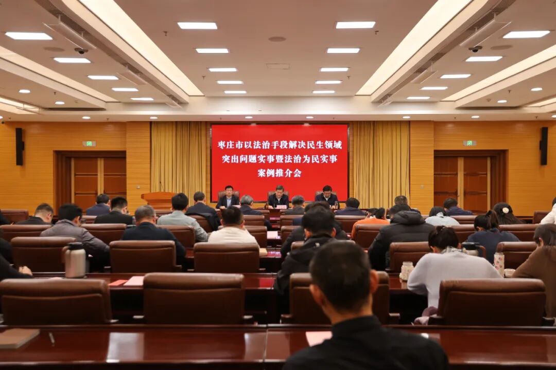 推介会以视频、PPT的形式集中推介了枣庄市法治为民实事暨以法治手段解决民生领域突出问题5个优秀典型案例。会上,李明智宣读了《关于推介枣庄市法治为民实事暨以法治手段解决民生领域突出问题优秀典型案例的通报》。