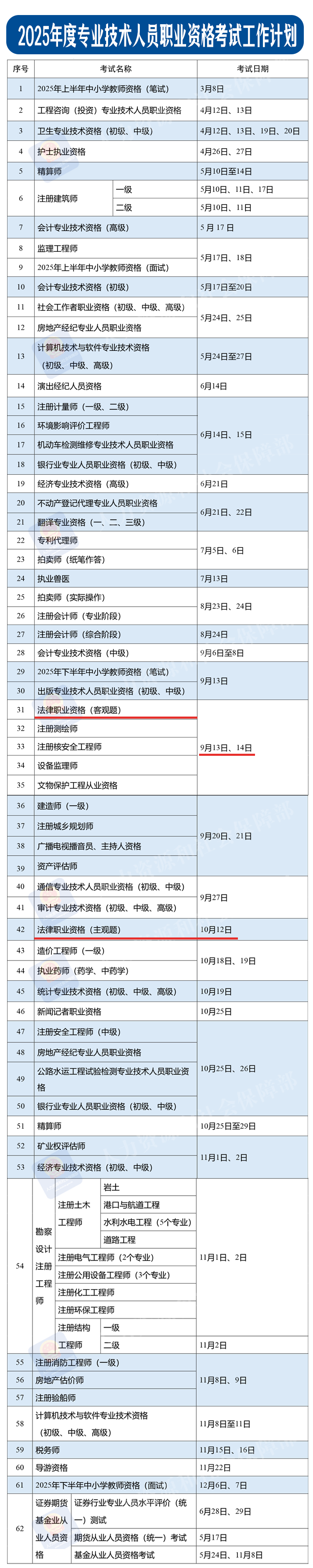 近日,人力资源社会保障部办公厅印发《关于2025年度专业技术人员职业资格考试工作计划及有关事项的通知》。