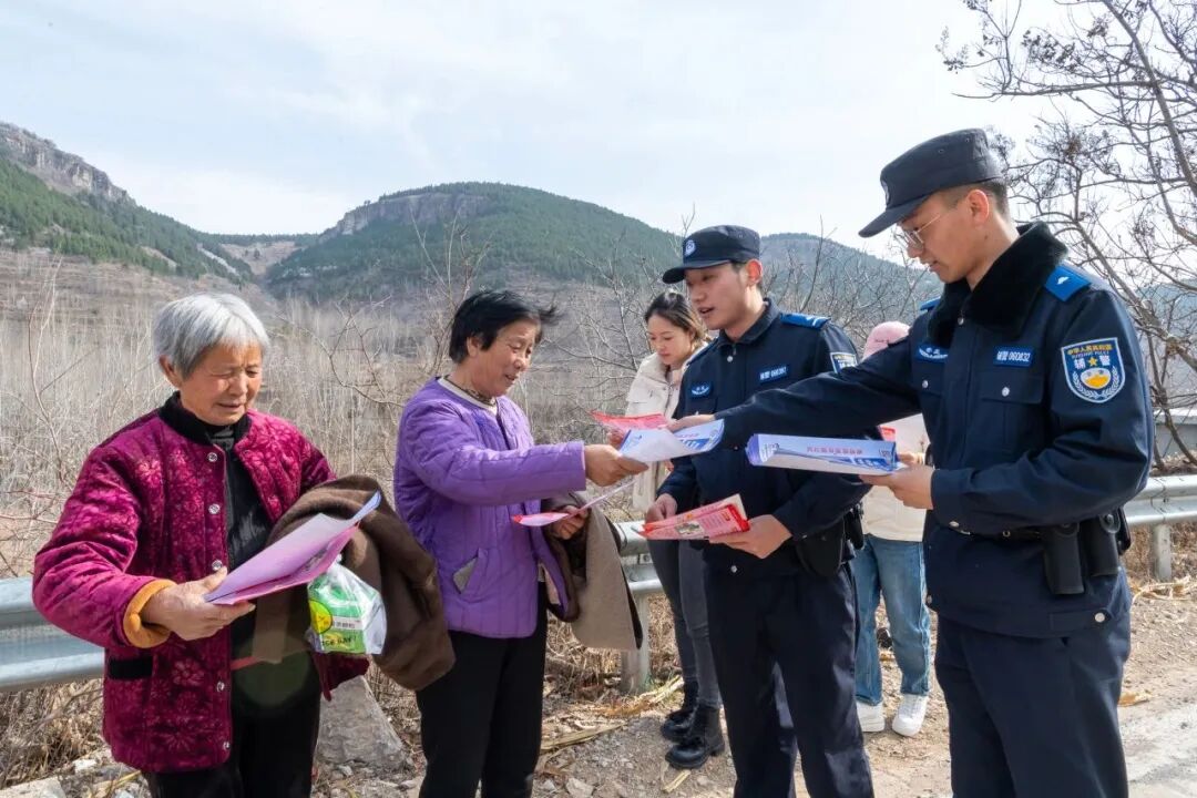 民辅警就近期高发频发的“网络购物诈骗”“虚假投资理财诈骗”“AI换脸”等新型诈骗手段和防范技巧向游客和农户进行宣传。同时,民辅警提醒前来登山的游客一定要绷紧安全“弦”,时刻注意周边环境,避免冒险进入不安全区域。