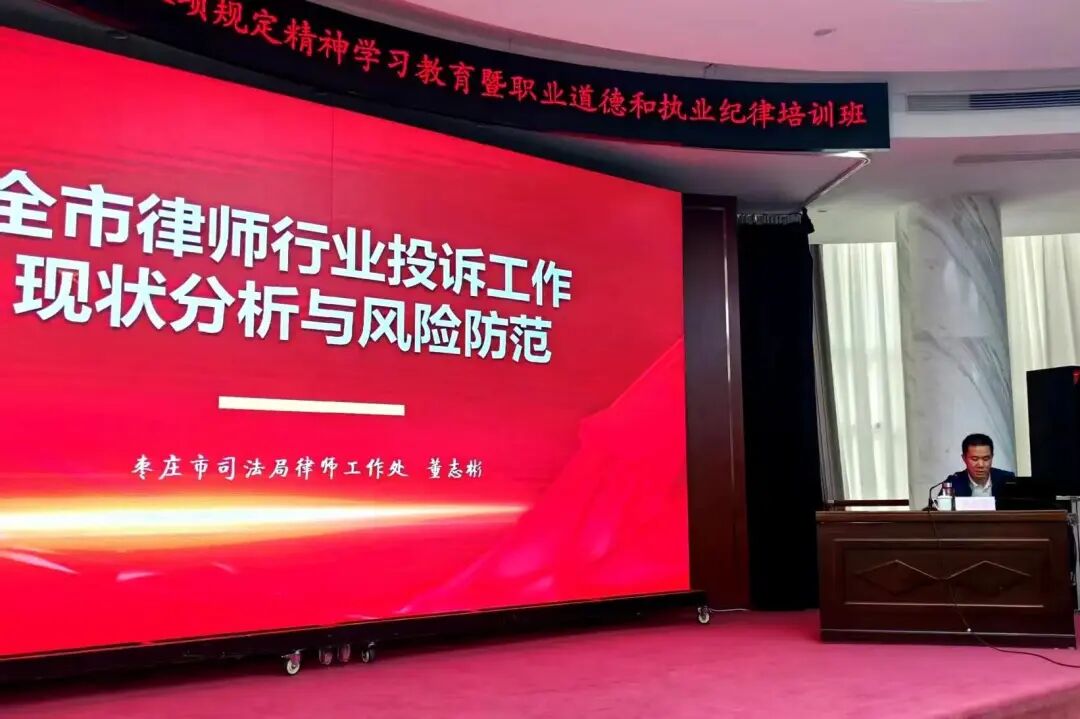 培训期间,通报了2024年以来全市律师行业投诉处理的有关情况,集中观看了中央八项规定精神电视专题片《铁规矩硬杠杠》;市司法局律师工作处和市律师协会惩戒委员会有关负责同志分别以《全市律师行业投诉工作现状分析与风险防范》《筑牢执业风险堤坝,做党和人民满意律师》为题,结合案例深入讲解律师职业道德和执业纪律,警示全体律师在执业过程中严守法律底线,规范自身行为,维护律师行业的形象和声誉。