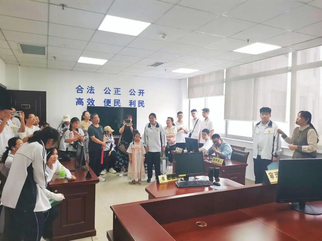 学生和家长们首先实地参观了法治史微展室,学习了解了中国共产党法治发展史以及百年来中国共产党领导法治建设取得的辉煌成就。当讲解人员介绍到枣庄市在各部门和社会各界的共同努力下,最终获评“全国法治政府建设示范市”时,同学们纷纷报以热烈的掌声;随后学生和家长们走进行政复议办公场所,初步了解了什么是行政复议,行政复议是干什么的、具体如何办理?并在行政复议听证审理室亲身体验了一把当“行政复议官”的感觉。