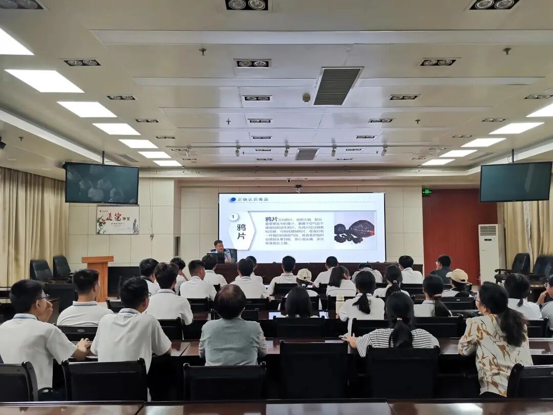 最后,学生和家长们聆听了一场声情并茂的“守护青春 远离毒品”禁毒法律知识讲座。枣庄市强制隔离戒毒所“榴馨园”禁毒戒毒法治宣传队干警李斐以PPT课件、真实案例分享相结合的方式,从“识毒品、知毒害、防毒危、拒毒惑”四个方面作了详细讲解,不仅使学生和家长们了解了各种毒品的种类和特征,还知晓了它们带来的严重危害。并现场通过展示伪装成“奶茶粉”“跳跳糖”“电子烟”的毒品模型,揭露其隐蔽性特征,警示学生警惕日常生活中的“甜蜜陷阱”。