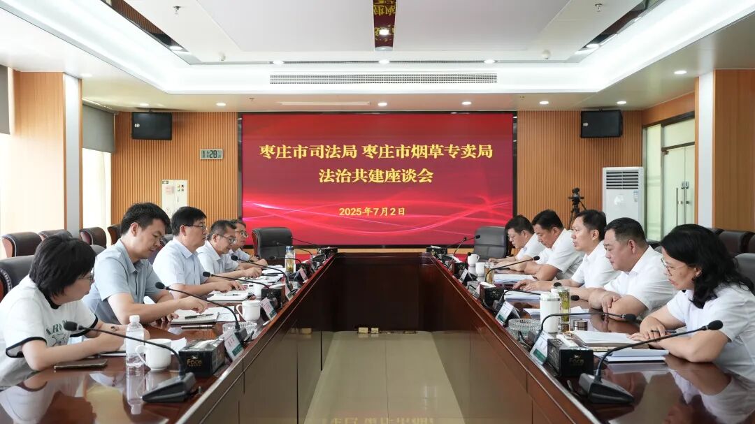 7月2日,枣庄市司法局党组书记、局长孙守春带队赴市烟草专卖局开展法治共建专题调研,实地考察基层法治实践成果,并召开座谈会共商协作机制深化举措。市司法局党组成员、副局长曹斌及相关业务处室负责人参加活动,市烟草专卖局党委书记、局长赵军陪同调研。双方围绕依法治企、普法宣传、执法监督等领域达成多项共识,标志着枣庄市“行政执法+司法保障”协作模式迈入新阶段。