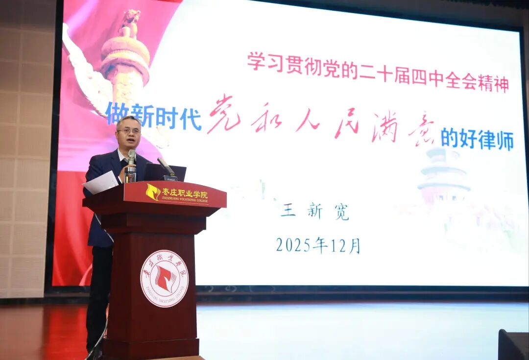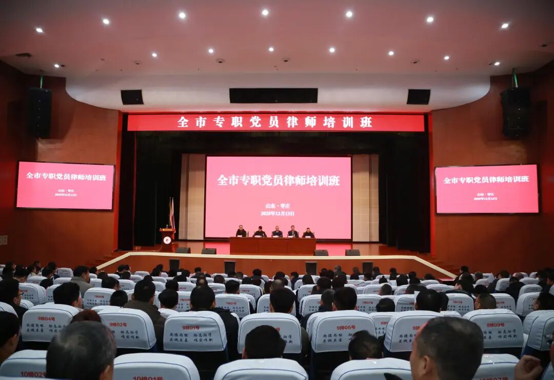 12月13日—14日,枣庄市律师行业党委在枣庄职业学院举办党员律师培训班。市司法局党组成员、政治部主任,市律师行业党委书记王新宽,市律师协会会长朱士刚、监事长李君友出席开班式,市委组织部、市委社会工作部派员跟班指导。市律师行业党委委员、党员专职律师共260余人参加培训。
