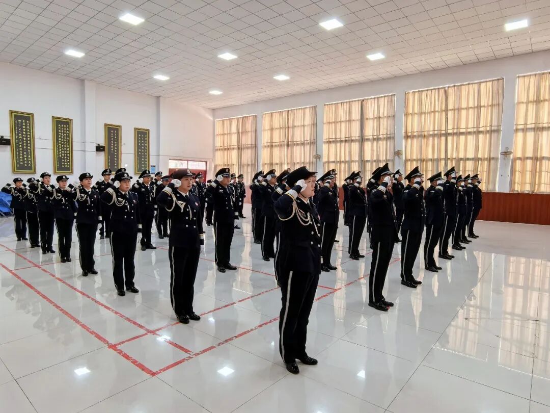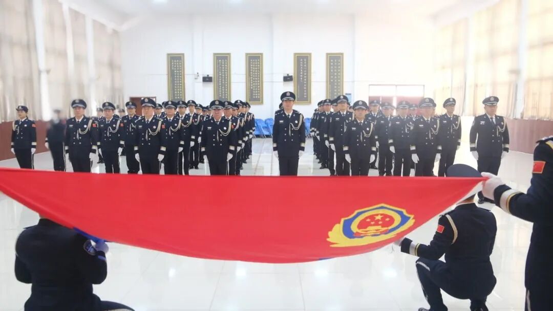 “伟大的祖国赋予我使命,复兴的民族给予我力量……”当激昂的《中国人民警察警歌》旋律响起,全体警察面向警旗,齐声高唱。歌声铿锵有力、震撼人心,传递出队伍万众一心的凝聚力,展现出锐意进取的斗志,更彰显了人民警察的职业荣誉感与自豪感。