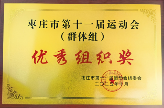 枣庄市司法局荣获市第十一届运动会优秀组织奖,2名干部均获参赛项目第1名,群体组中总分第4名。
