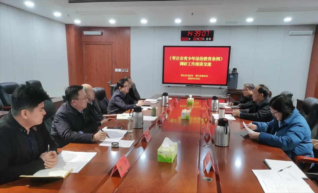 《枣庄市青少年法治教育条例》列入2026年枣庄市地方立法调研项目。2月9日下午,枣庄市司法局联合市教育局召开调研工作座谈会,就《枣庄市青少年法治教育条例》立法调查问卷内容和如何高效、协同推进该项立法调研工作进行了交流。市教育局党组成员、总督学史玉光,市司法局党组成员、市公共法律服务中心主任李长青以及市教育局、市司法局相关处室负责人参加会议。